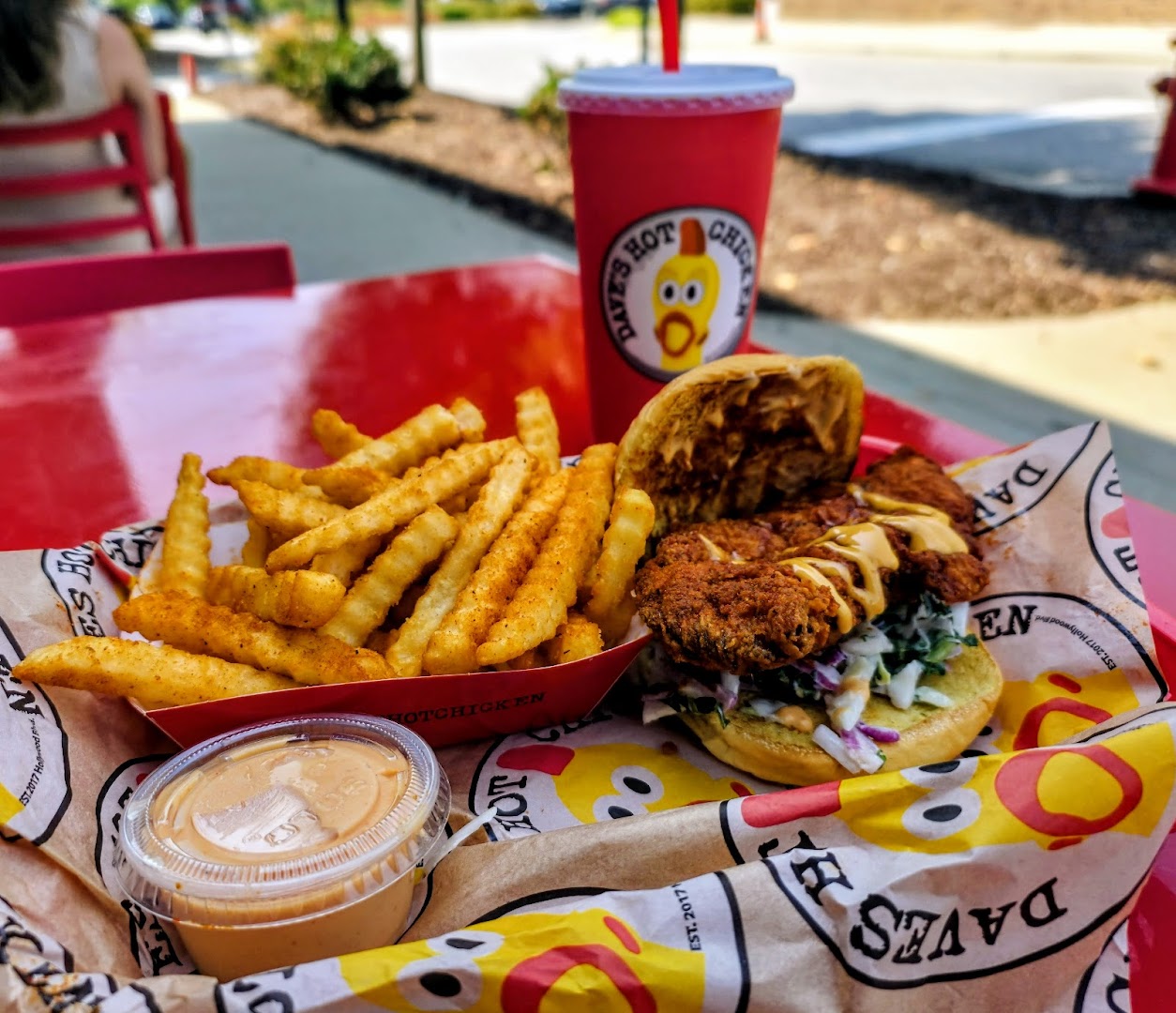 Dave's Hot Chicken offers a vibrant dining experience focused on bold, flavorful fried chicken with a spectrum of spice levels. Guests enjoy large, juicy tenders and sliders paired with crispy fries and signature shakes in a lively North Hills setting. The friendly staff, swift service options including dine-in and takeout, and a straightforward menu make it a destination for those craving a satisfying chicken feast.