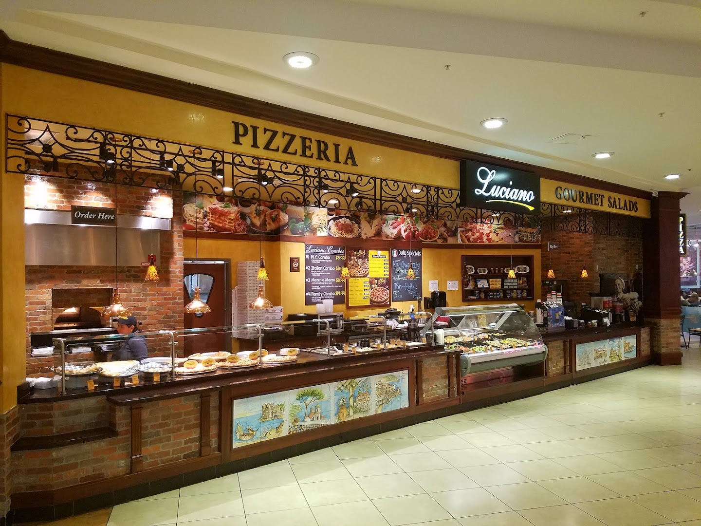 🍷 Enjoy a Drink: Luciano features beer and wine options, with dedicated bar seating inside the food court for a relaxed meal pairing.