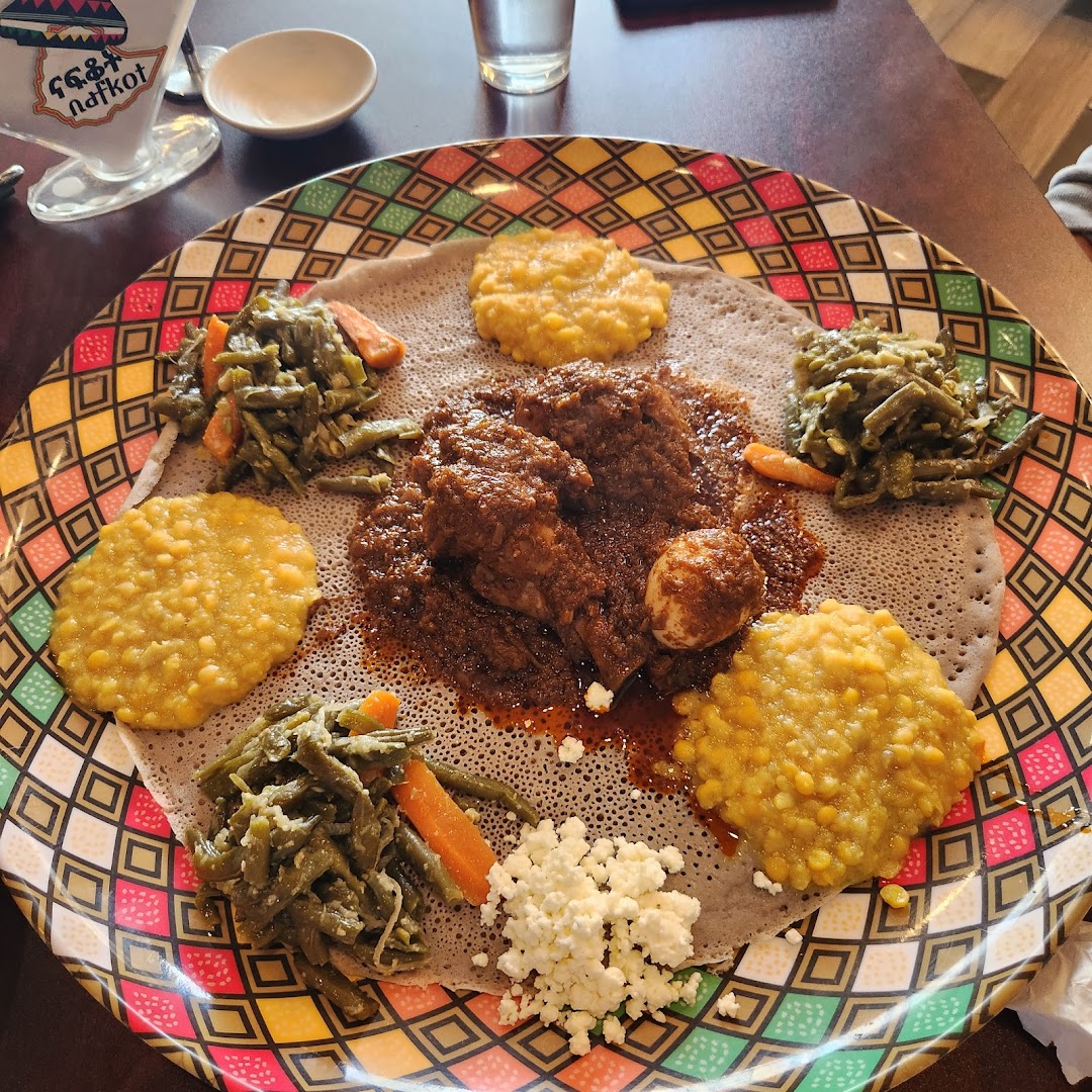 Nafkot Ethiopian Restaurant & Bar serves authentic Ethiopian dishes with a broad selection for vegetarians and vegans overlooking a vibrant and casual space. The attentive staff guides diners through the menu, complemented by a well-stocked bar featuring cocktails and coffee specialties.