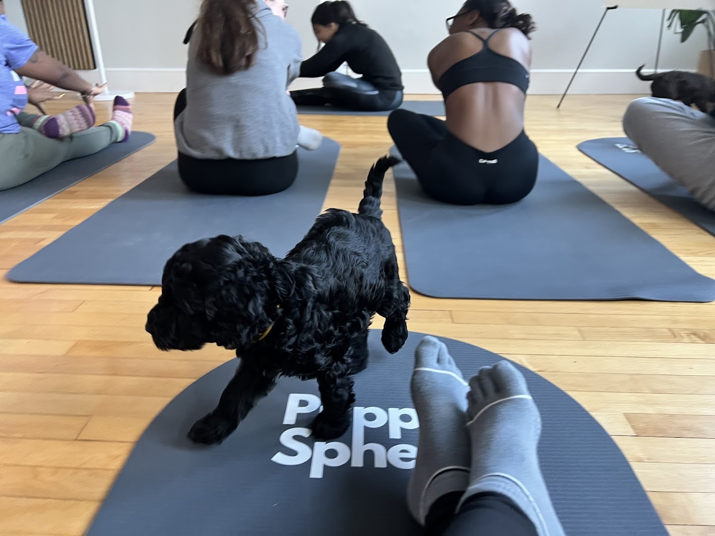 πΆ Puppy Interaction: The highlight is playful pups that enhance the relaxing yoga experience and mental wellness.