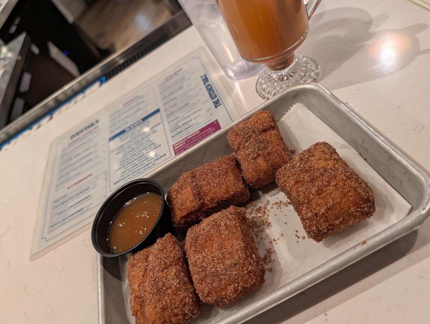 🍹 Creative Cocktails: Bartender Zack is renowned for inventive drinks, including seasonal favorites like the Apple Butter Bourbon fizz.