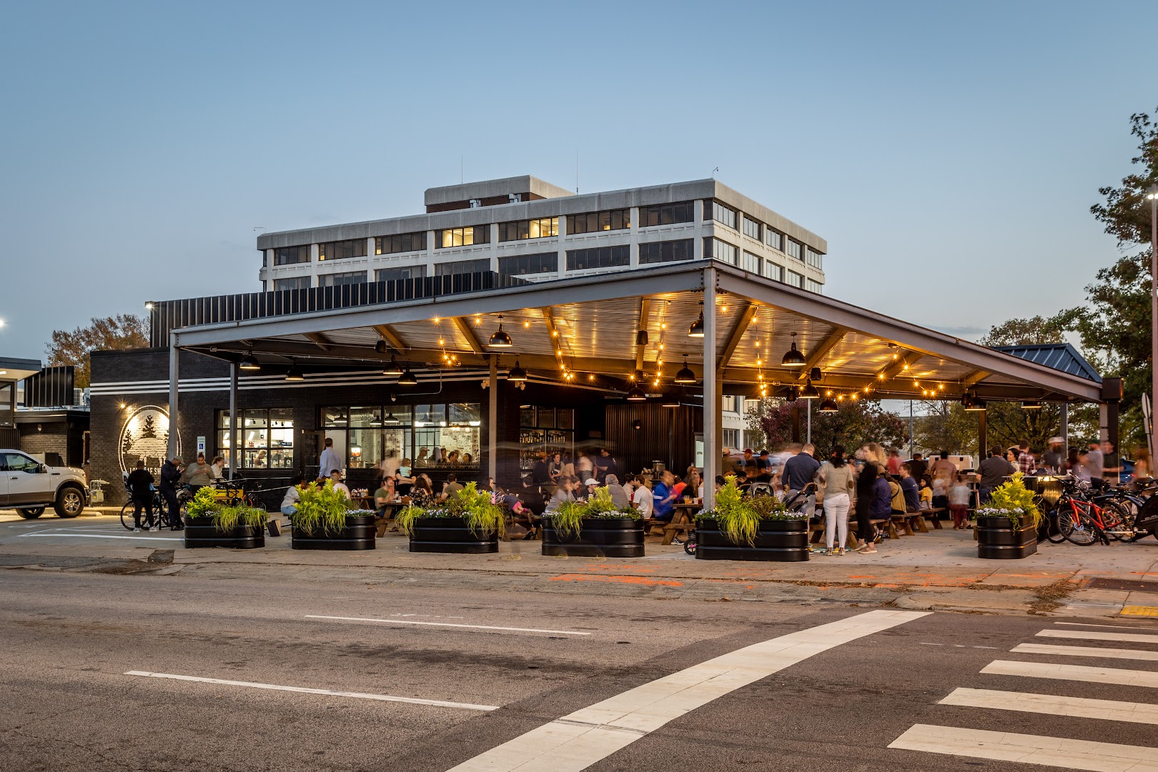 Trophy Brewing Five Points offers a lively brewpub experience with an extensive selection of craft beers, cocktails, and a menu spotlighting pizza and small plates. The roomy interior includes both indoor and attractive outdoor seating, making it great for dinners and group gatherings.